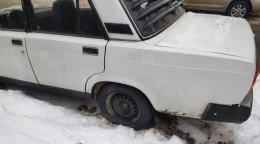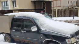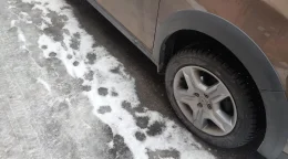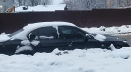 В Калуге упавший с надземного перехода снег смял ехавшую машину