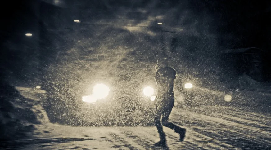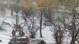 Новый снегопад обрушился на город.