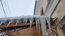В Калуге упавшая глыба льда едва не покалечила мужчину с ребенком