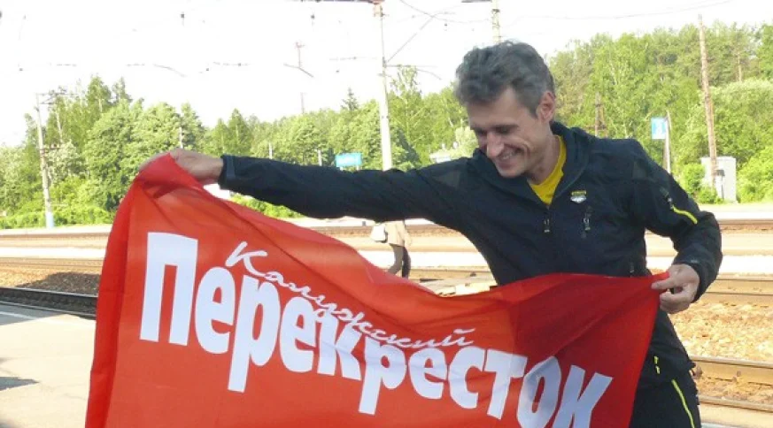 Альпинист Алексей Косяков взял с собой флаг нашей газеты.