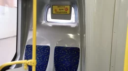 Стикер кто-то наклеил рядом с задним рядом кресел в автобусе №34, который возит студентов в кампус Бауманского университета в Пучково.