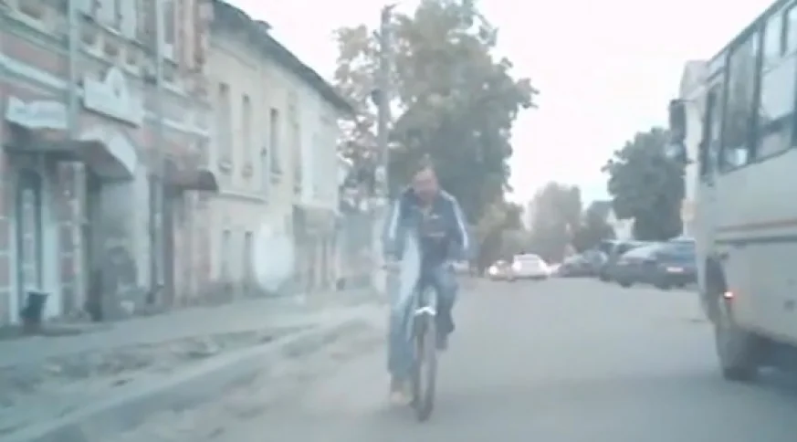 Он переезжал дорогу у подъезда.