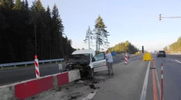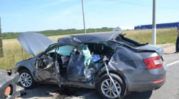 Ехавший в сторону Калуги самосвал MAN «догнал» попутную «Волгу».
