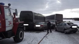 Легковушка выехала на встречку и врезалась в фуру.