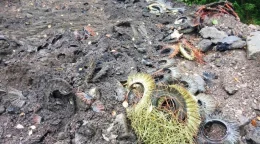 Самосвалы сваливают отходы прямо в центре города.
