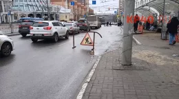 У остановки общественного транспорта продолжаются работы «Калугатеплосети».