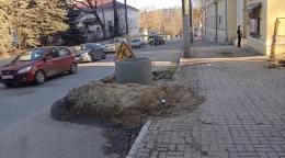 В районе краеведческого музея раскопана полоса в сторону Каменного моста.
