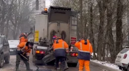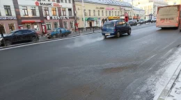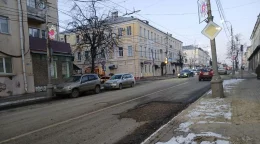 Как мы уже рассказывали, яма начала образовываться в правой полосе на перекрестке с улицей Герцена.