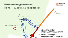 Проезд на участке с 71 по 73 километр будет закрыт в ночь с 9 на 10 октября, а также в ночь с 10 на 11 октября, сообщили в «Автодоре».