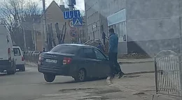 Машина въехала правым передним колесом в провалившийся люк.