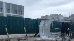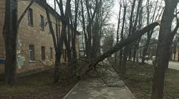 Павильон не выдержал сильных порывов в среду, 3 апреля, на улице Маяковского у детского сада.