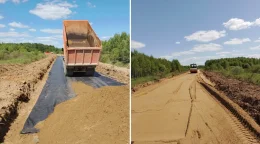 В Калужской области начали асфальтировать дорогу к тульскому Алексину