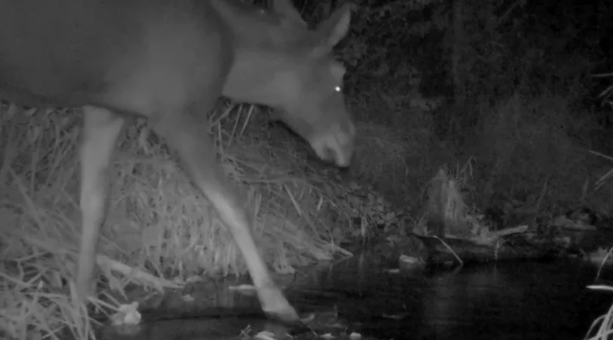 Животное на водопое попало на камеру фотоловушки в заповеднике «Калужские засеки».