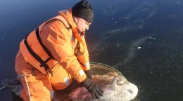 У птицы оказалось повреждено крыло, поэтому она не смогла улететь в теплые края.