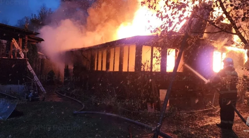 В Ферзиковском районе Калужской области сгорел двухквартирный дом