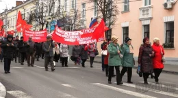 В Калуге прошла демонстрация в честь Октябрьской революции.