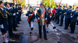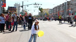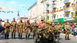 Парадное шествие растянулось по всей улице Кирова.