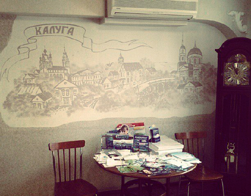 Вот так выглядит стена в одной из городских аптек. Фото «Вконтакте» в группе «История Калуги» выложил Илюша Radomichew.
