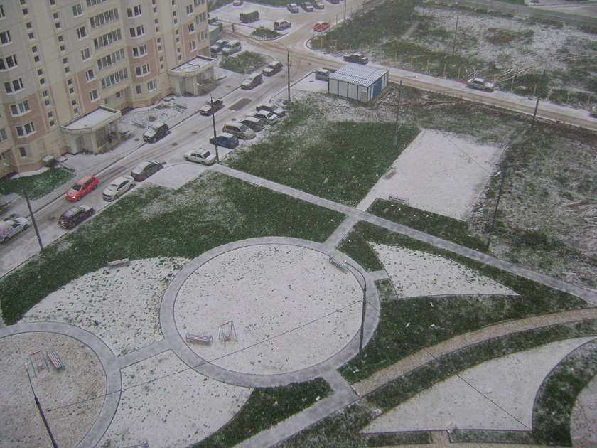 Продолжаем тему погоды. В «Одноклассниках» Татьяна Цыганова-Лев выложила фотографию вчерашнего снегопада. Так после него выглядел Правый брег.