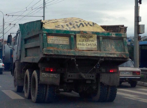Калуга настолько суровый город, что трудящихся у нас перевозят на самосвалах, укрыв брезентом.