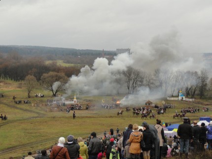 И вновь продолжается бой! В воскресенье, 27 октября, на Ивановском лугу состоялась историческая реконструкция битвы при Малоярославце. Весь день гремели залпы орудий, трещали мушкеты и стояла дымовая завеса, сообщает obninsk.name