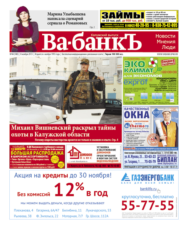 Сегодня в свет вышел свежий номер газеты «Ва-банкЪ». Вот что интересного в нем можно прочитать: