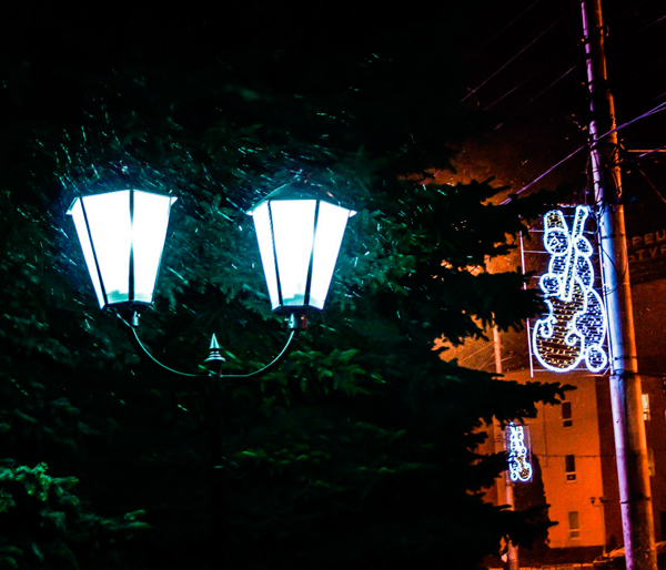 Снеговиками украсили даже фонарные столбы.