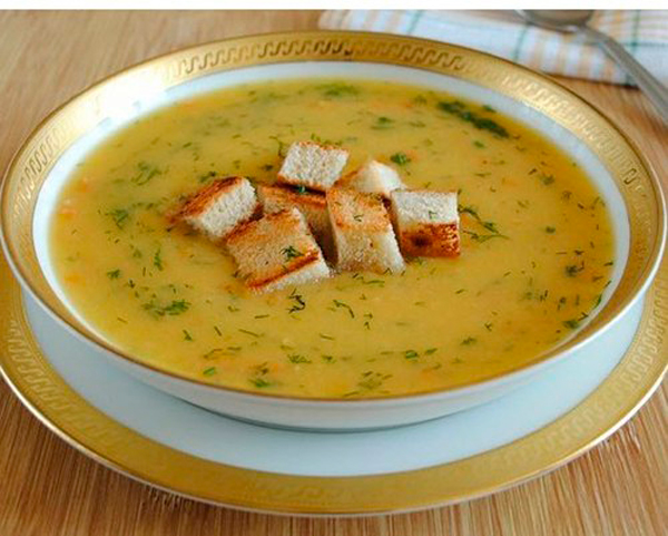 Приближается время обеда. Сегодня мы предлагаем приготовить суп-пюре с сухариками.