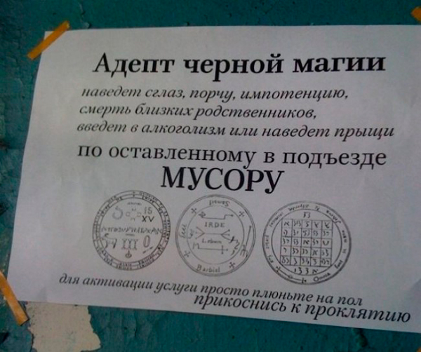 Чтобы калужане перестали мусорить в подъездах, приходиться прибегать даже к черной магии.