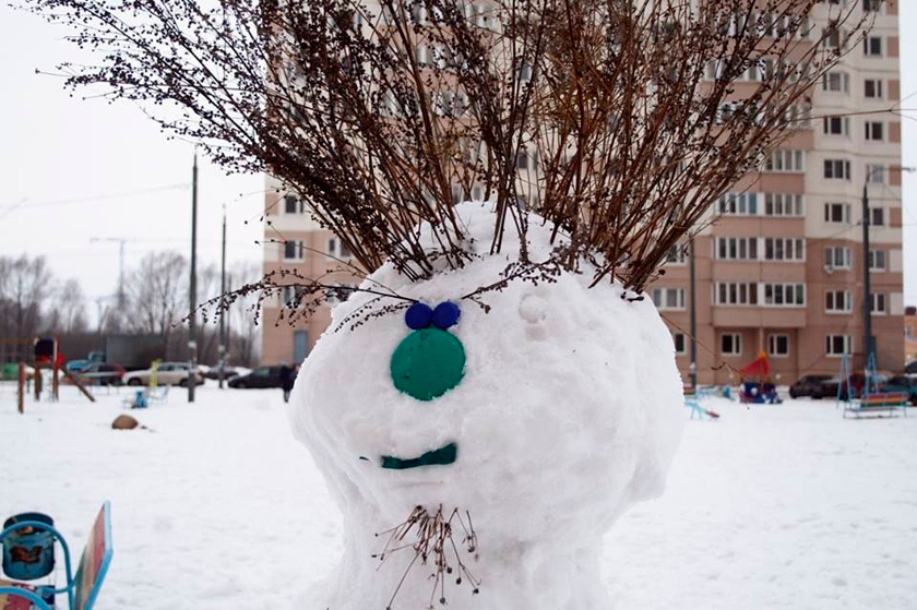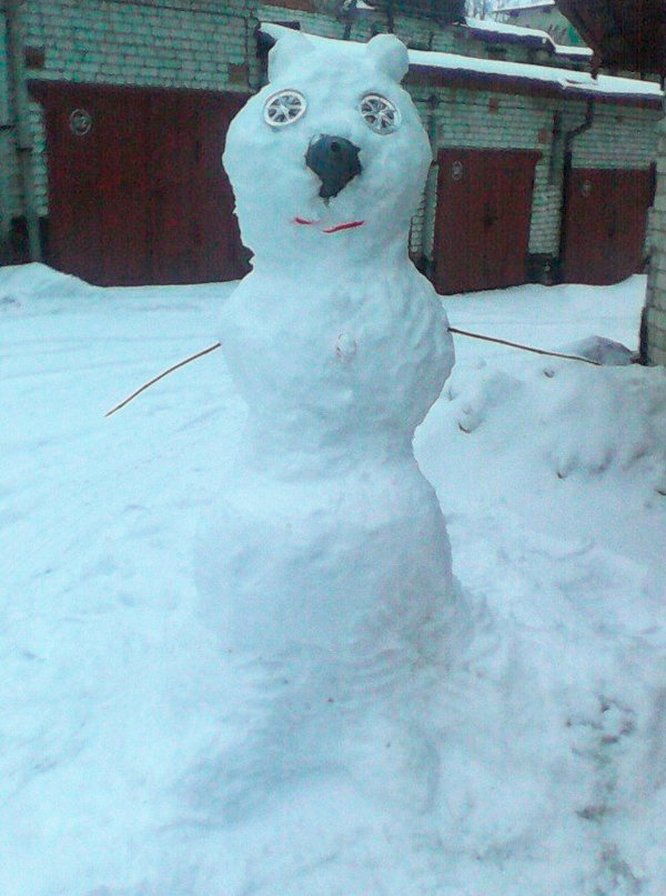Калужские снеговики не только радую прохожих, но и охраняют гаражи.