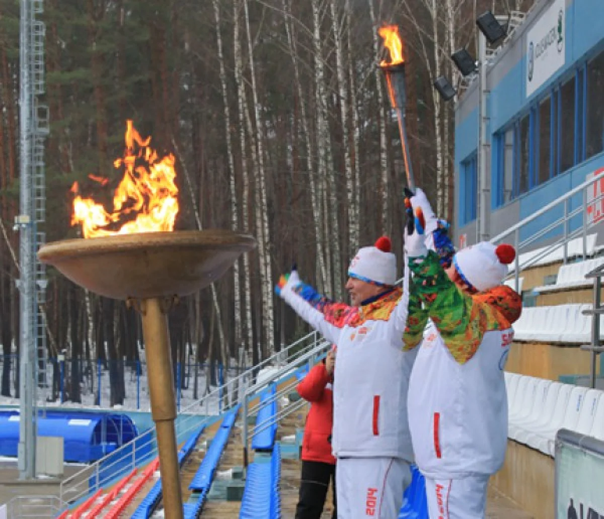 После поднятия флага сельских Игр факелоносцы, которые несли в октябре огонь Сочинской Олимпиады, пронесли и огонь сельских Игр.