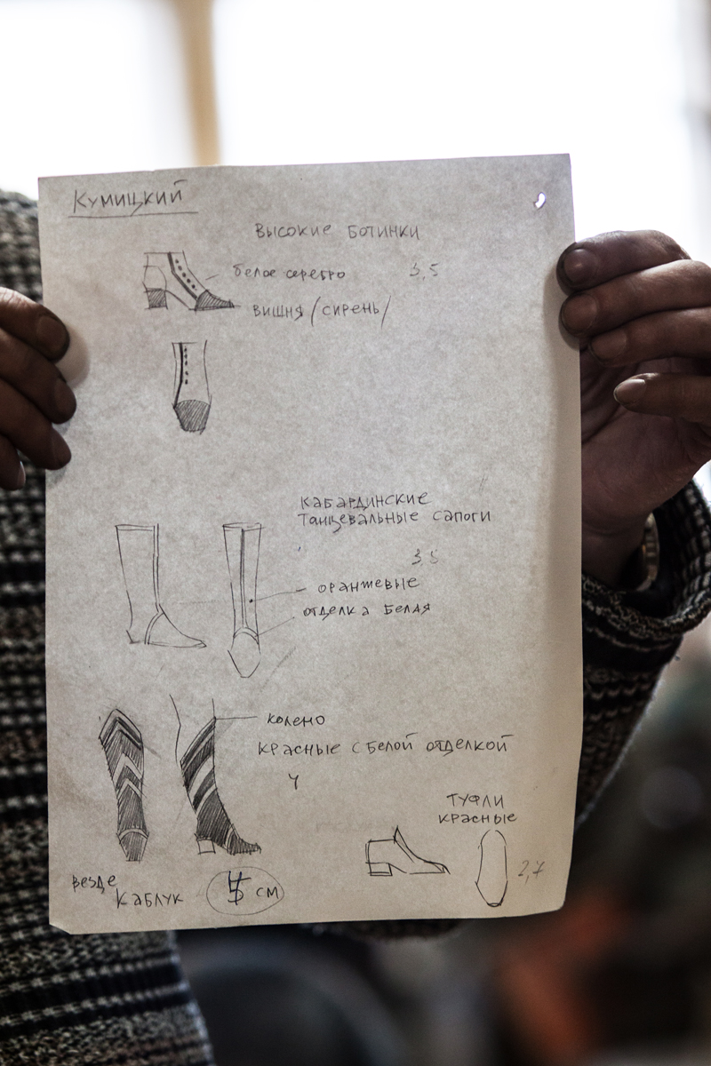 Впрочем, у самого Виталия Валерьевича работа не менее творческая. Художник по костюмам приносит мастеру лишь рисованные эскизы будущей сценической обуви, а как воплотить иллюстрацию в жизнь, придумывает уже сам Назаров.