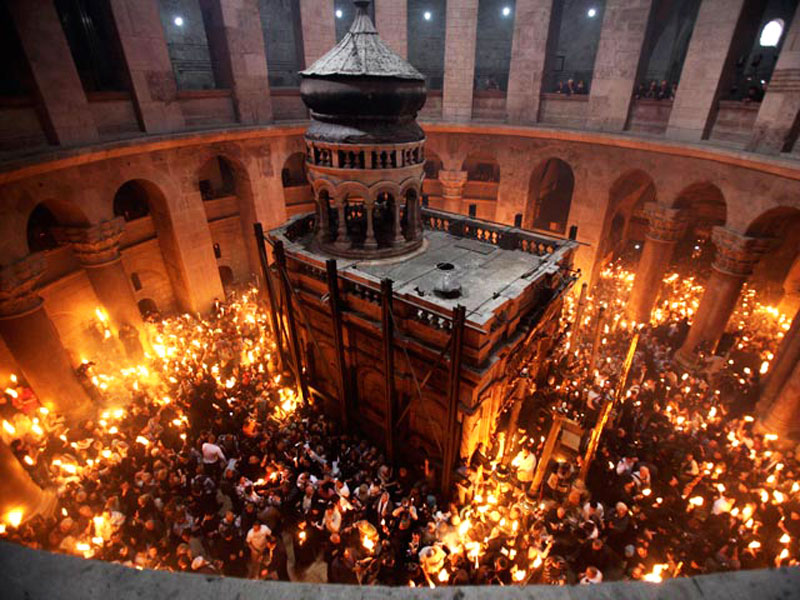 А вот Благодатный огонь сходит в Храме Горба Господня только в канун православной Пасхи.