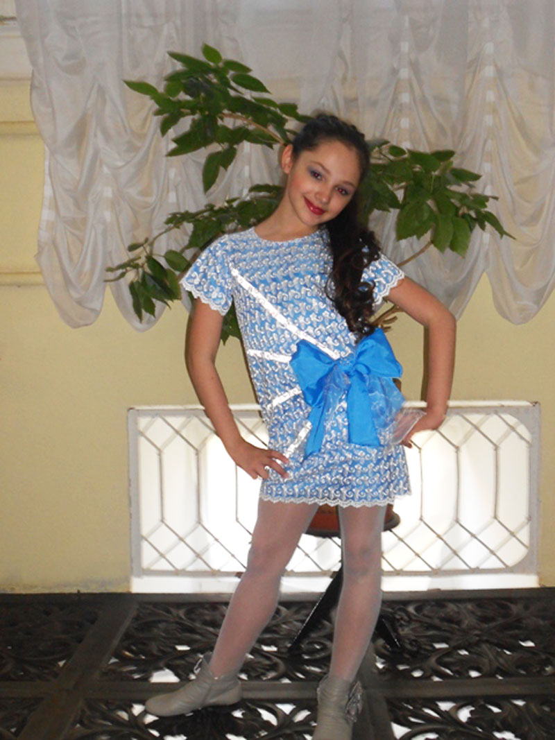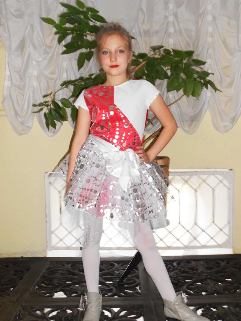 - Сделать такой костюм не сложно, - говорит победительница конкурса юных модельеров «Чародейка» Светлана АГАЕВА. - Две недели мы его продумывали. Мне помогала младшая сестра Аня. Мы с ней дома решали, какой фасон лучше. Я люблю классический и спортивный стили. Но здесь хотелось бы сделать необычную юбку.