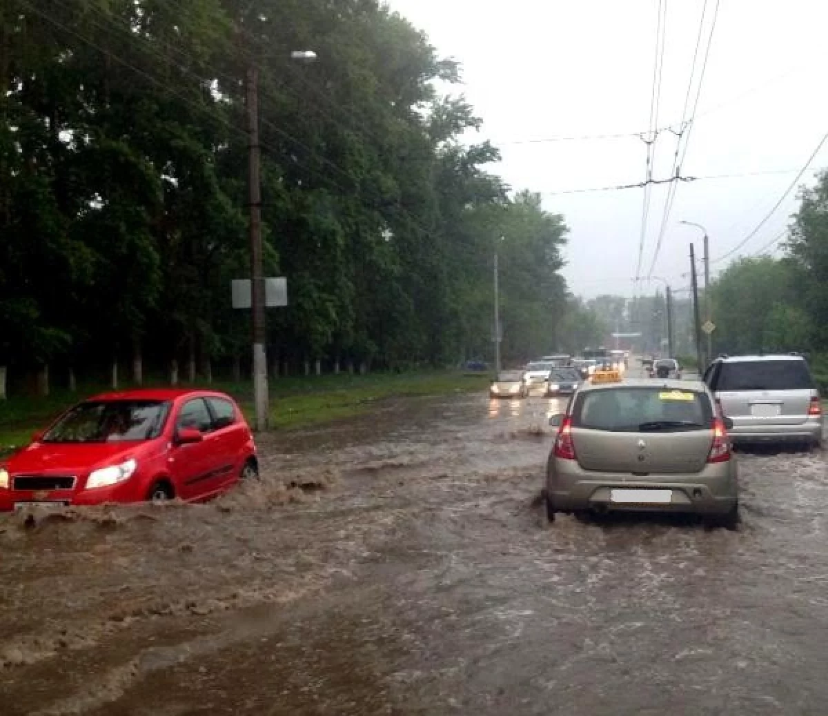 Дождь залил улицы и остановил троллейбусы в Калуге