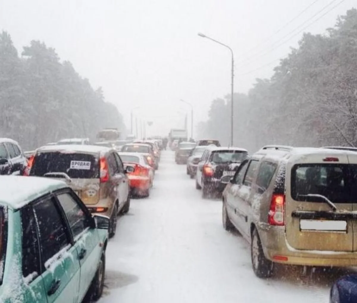Снегопад обрушился на Калугу: город встал в пробках