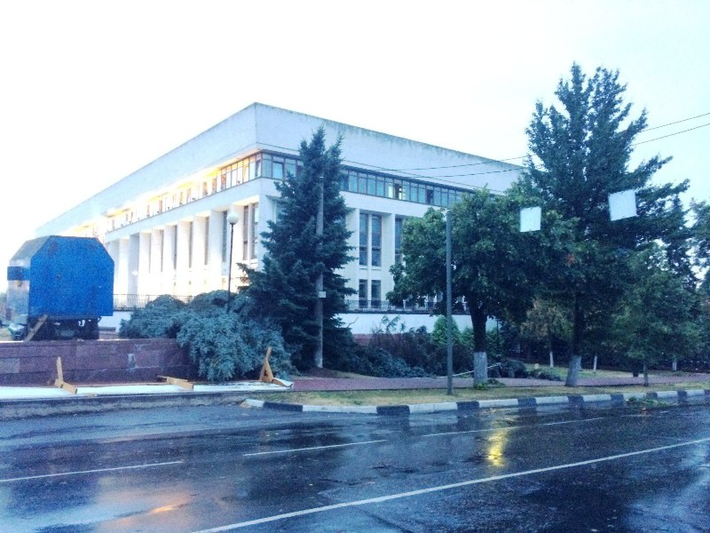 Ели и забор повалило у здания областной администрации на Старом Торге.