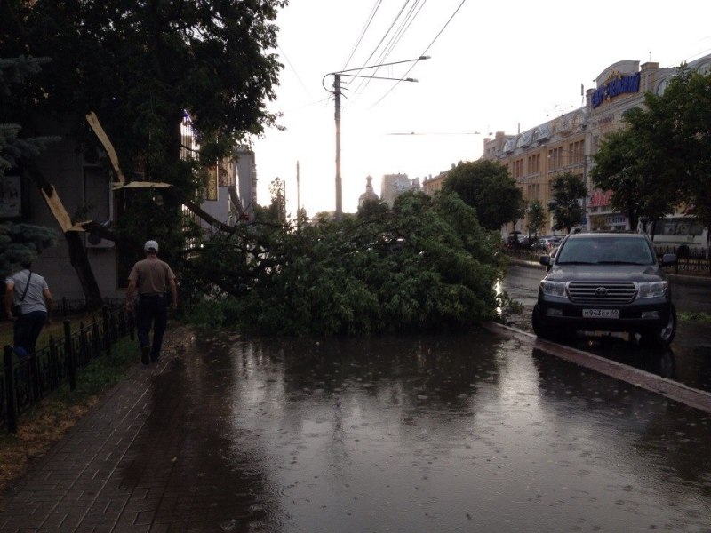Как сообщают жители города в социальных сетях, ветром повалило множество деревьев. На проезжую часть на улицах Степана Разина и Набережной упали опоры линий электропередач.