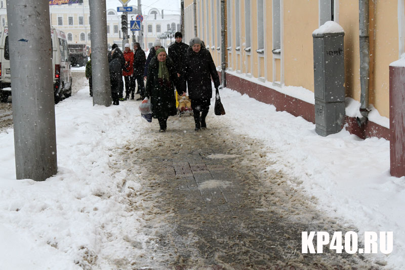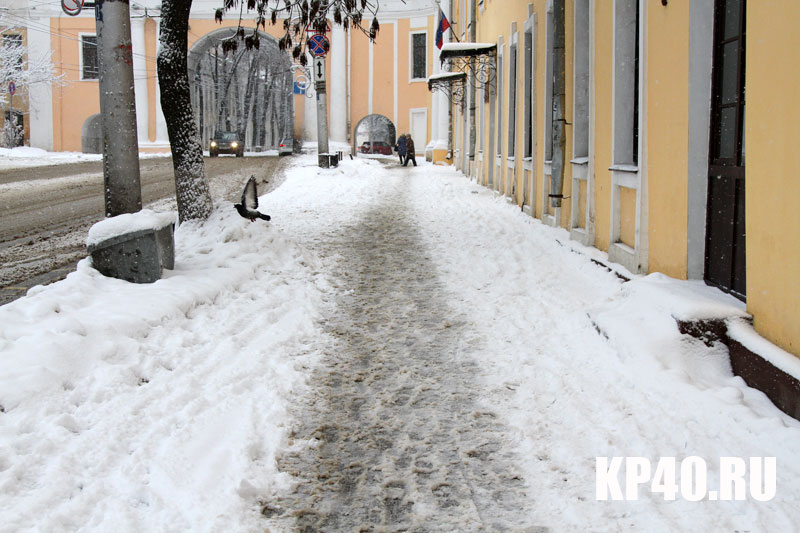 Снегопад в областном центре начался вечером в субботу, 10 января, и прекратился только ближе к полудню воскресенья. Утром, около 10 часов, корреспонденты «Перекрестка» прошлись по центру Калуги, чтобы посмотреть, как работают коммунальные службы, однако ни дворники, ни снегоуборочная техника на «месте происшествия» замечены не были.
