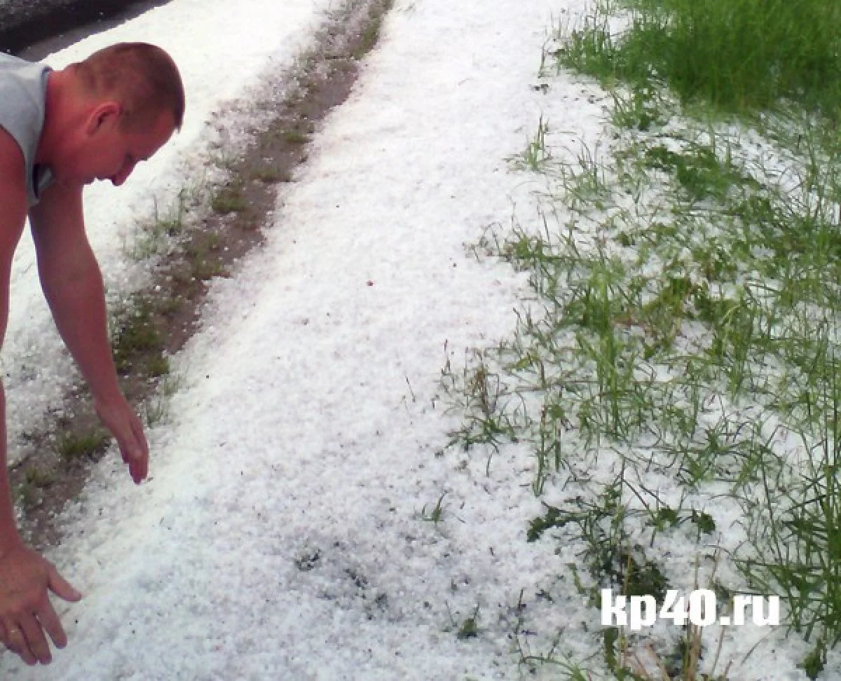 В пятницу, 3 июня, на Калужскую область обрушился град. В Медынском районе, как видно на фото и видео, выпал слой в несколько сантиметров.