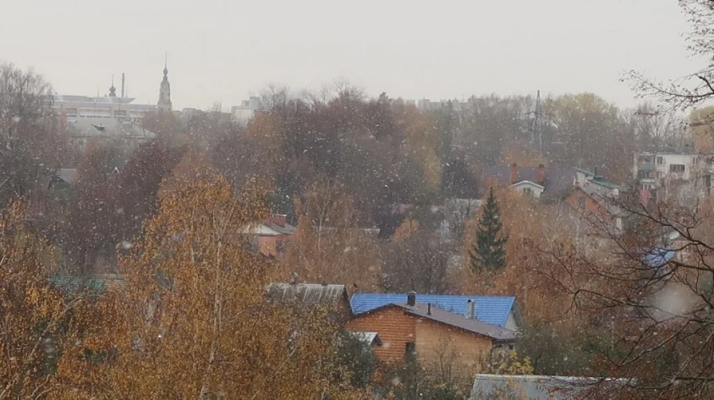 Утром в понедельник, 23 октября, в Калуге выпал первый снег. Фотографии калужане выкладывают в социальных сетях.