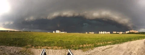 Вечером пятницы,14 июня, на город обрушился мощный грозовой фронт. Непогода изрядно потрепала город. Автомобили и троллейбусы проваливались под землю, деревья и столбы валило на дороги.