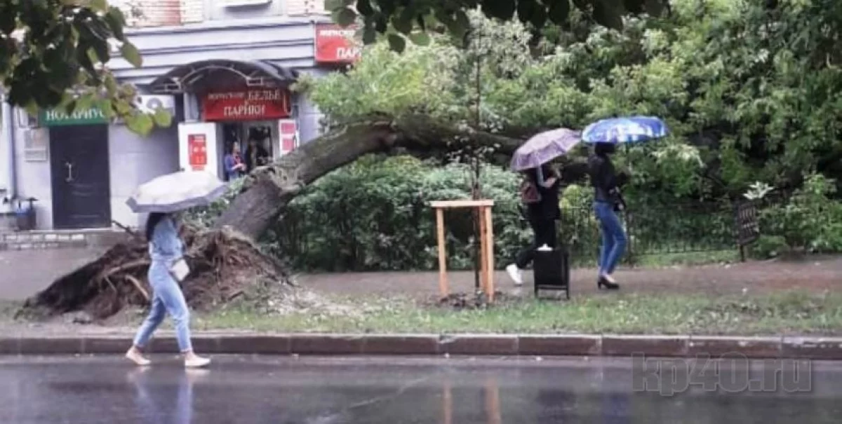 Днём в пятницу, 28 июня, на улице Плеханова в Калуге недалеко от перекрестка с улицей Дзержинского упало дерево.