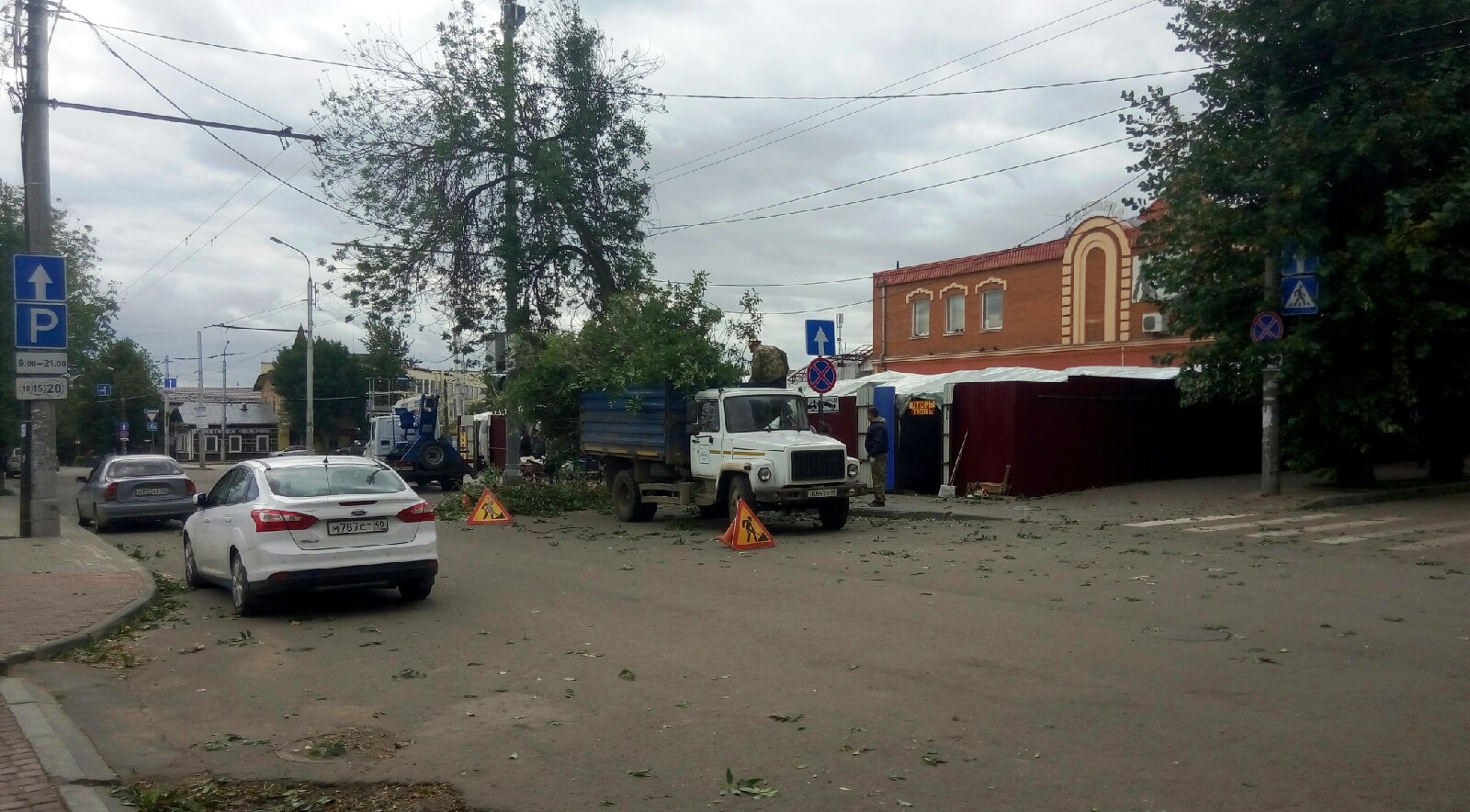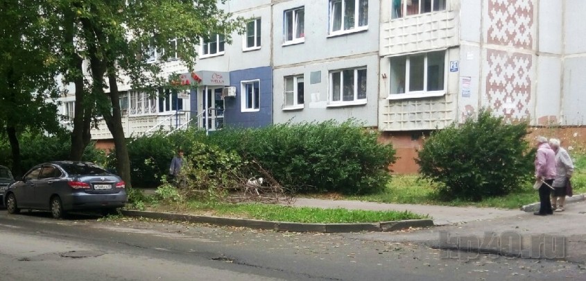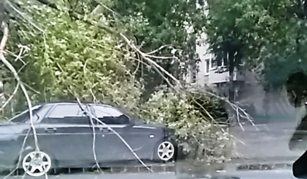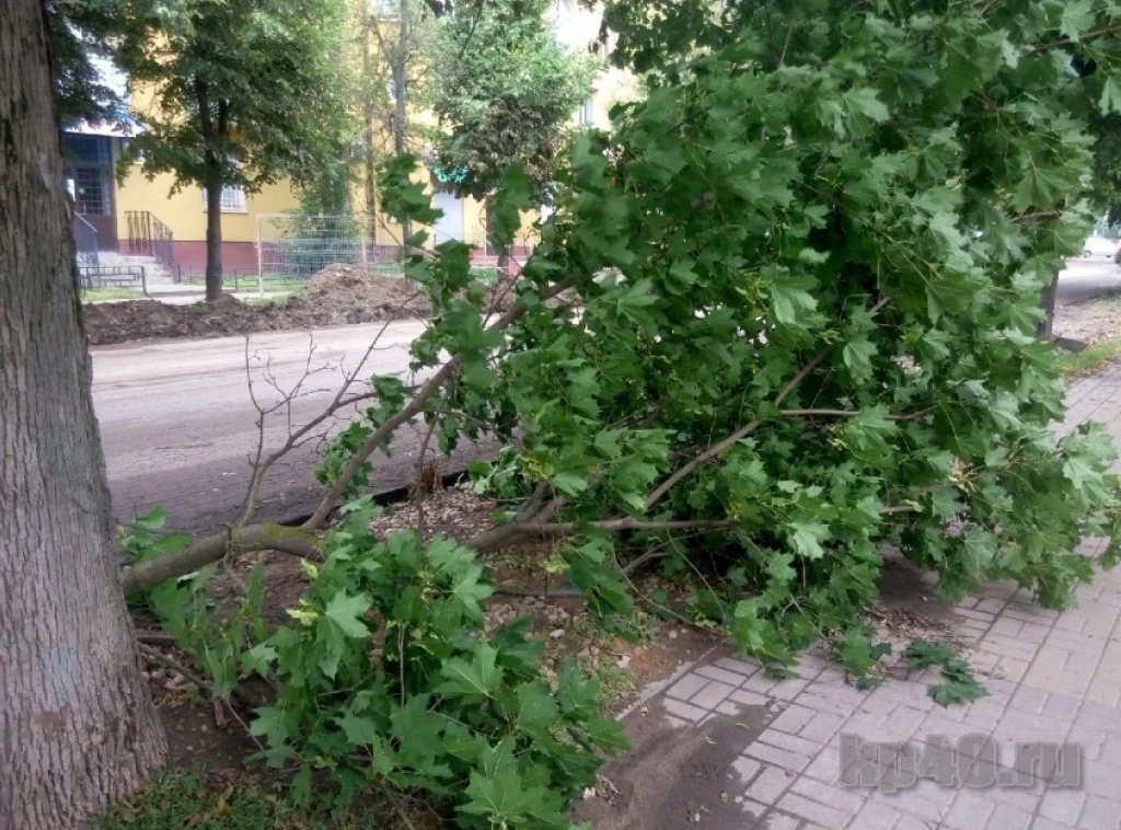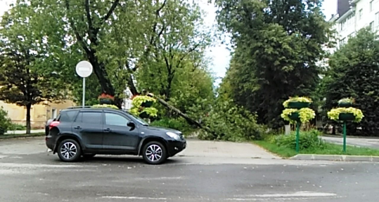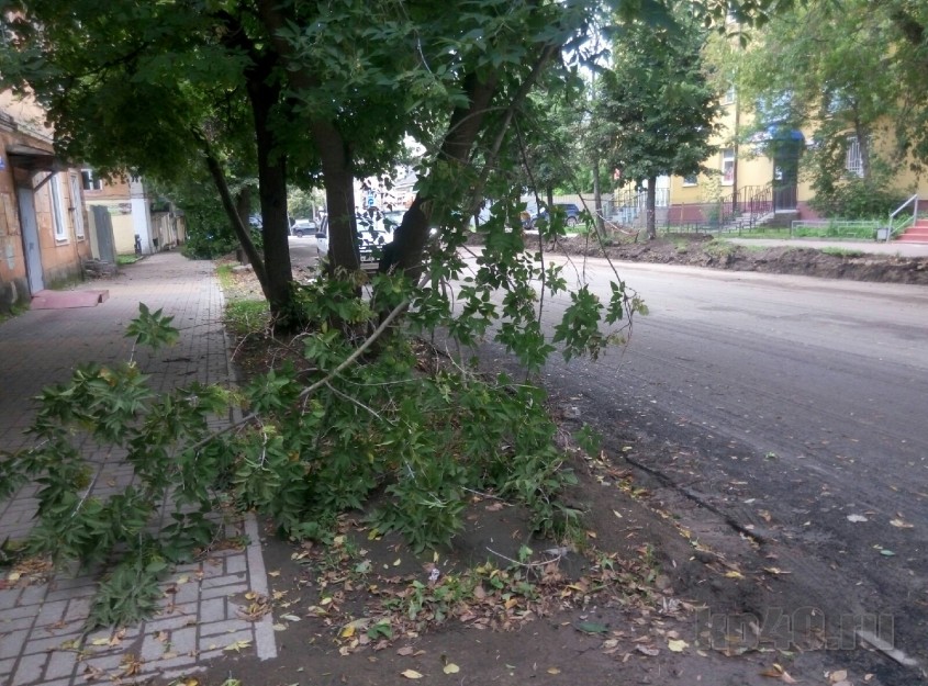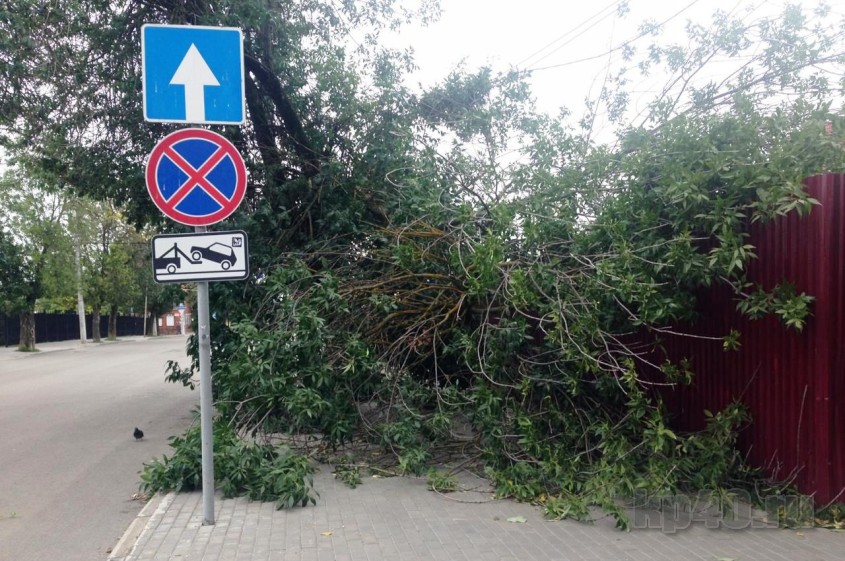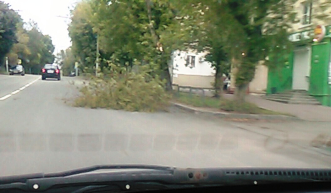 По всему городу ветер обломал ветки, кое-где попадали деревья.