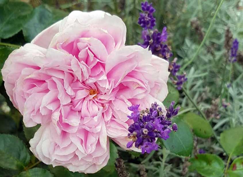 - Повторно цветут розы, но это нормально - они ремонтантные, - говорит калужанка. - А вот лаванда (синие цветки на переднем и заднем фоне – прим. ред) радует повторным цветением - это впервые в августе.