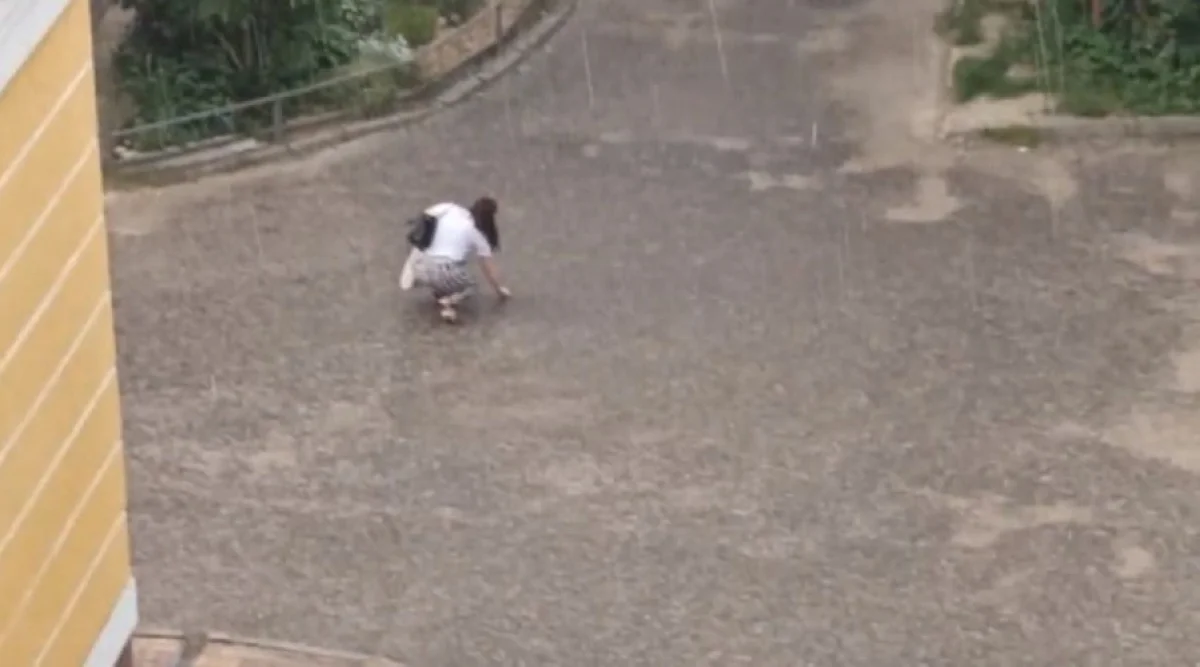 Крупные льдинки падали на землю в течение 20 минут, а затем начался ливень.