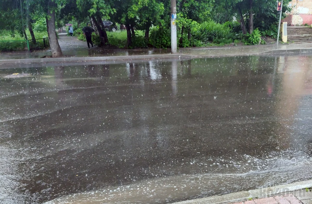 Сильный ливень обрушился на Калугу рано утром во вторник, 23 июня. По прогнозам синоптиков, такая погода будет сохраняться в течение всего дня.