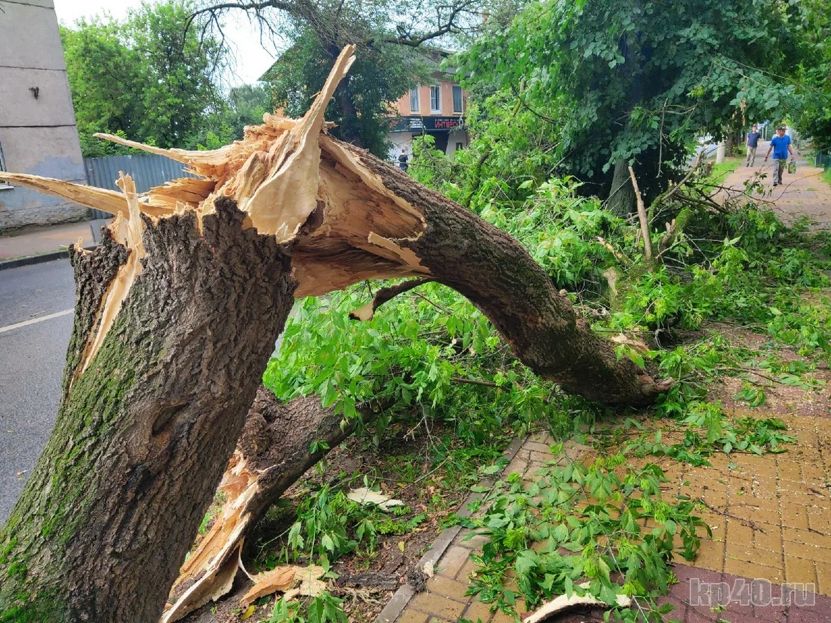 Падали деревья и в Калуге. В частности, в ночь на 8 июля во время грозы одно из них частично перекрыло проезд по улице Плеханова.