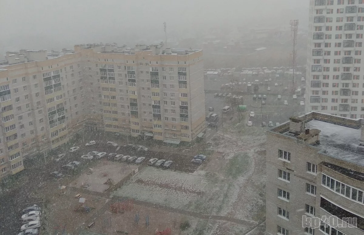 Днем во вторник, 20 октября, в Калуге выпал первый снег. Мокрые хлопья посыпали на землю около 15:30.