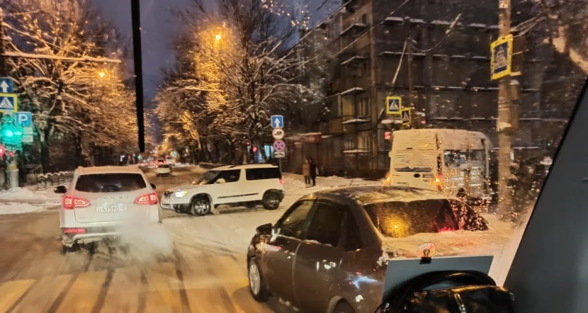 Текущая обстановка на улице Рылеева в Калуге. Утром 23 ноября на перекрестке с улицей Суворова там произошло ДТП. Фургон столкнулся с легковушкой.